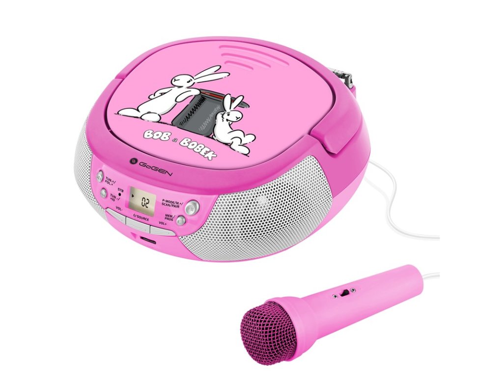 Oblíbení králíci z klobouku Bob a Bobek přináší dětem kompaktní CD přehrávač GoGEN. Na výběr je ze dvou barevných kombinací – modré nebo růžové. Snadno se tak tento přehrávač stane každodenním společníkem nejen nejmladších členů rodiny.