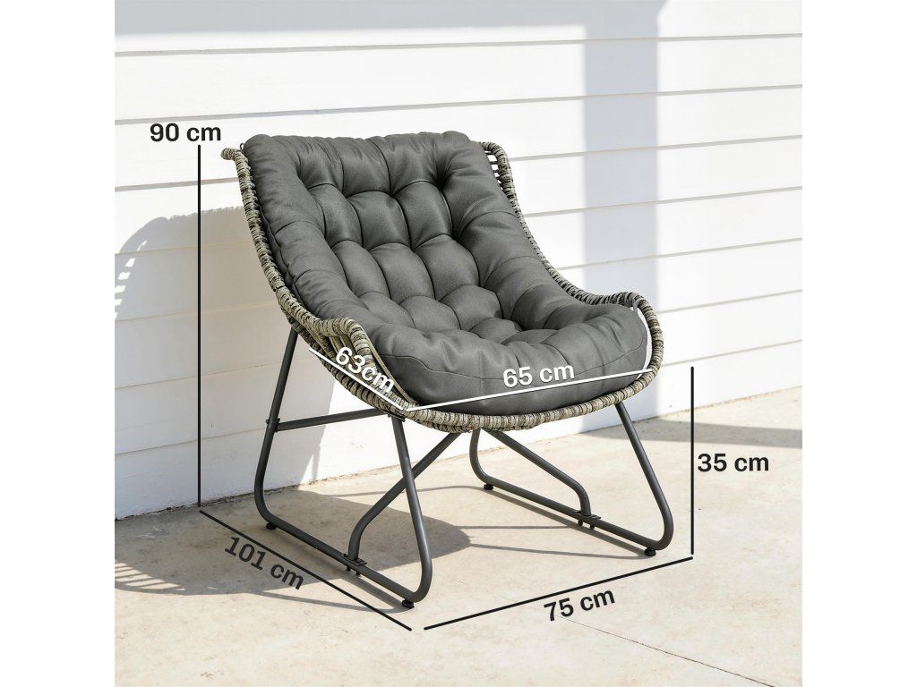 Robustní konstrukce: Toto ratanové křeslo je vyrobeno z robustního, práškově lakovaného ocelového rámu a vysoce kvalitního PE ratanu a nabízí vynikající odolnost a dekorativní, harmonický vzhled, ideální pro vaši zahradu.