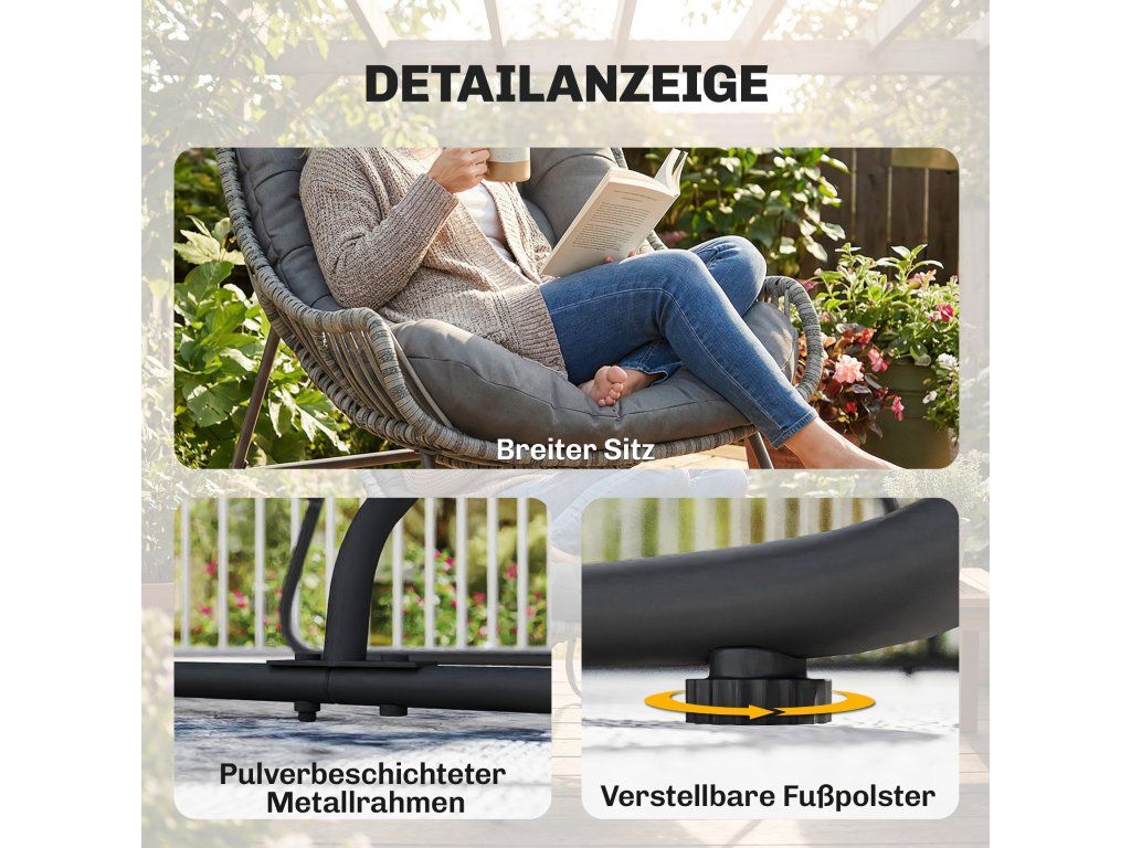 Vynikající vyvážení: Robustní rám a masivní ocelové nohy zahradní židle poskytují spolehlivou oporu, zatímco nastavitelné nohy zaručují dokonalou vyváženost i na mírně nerovném povrchu.