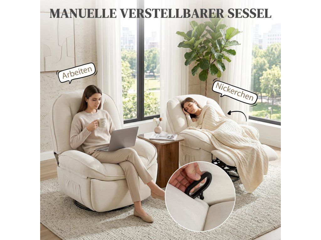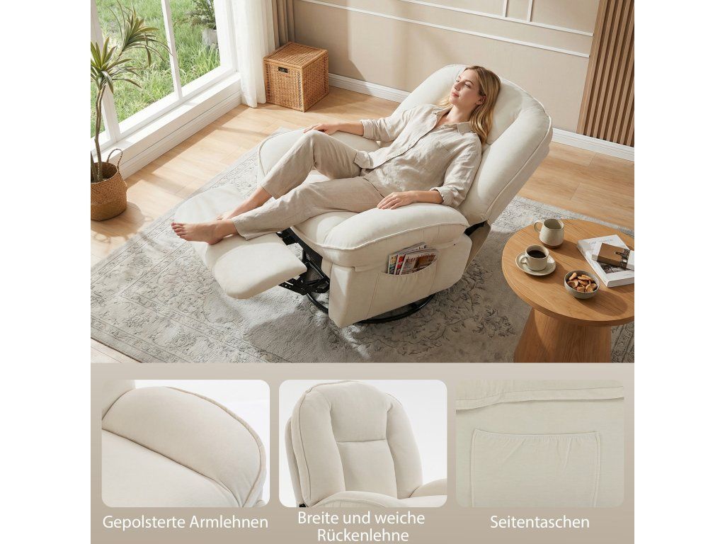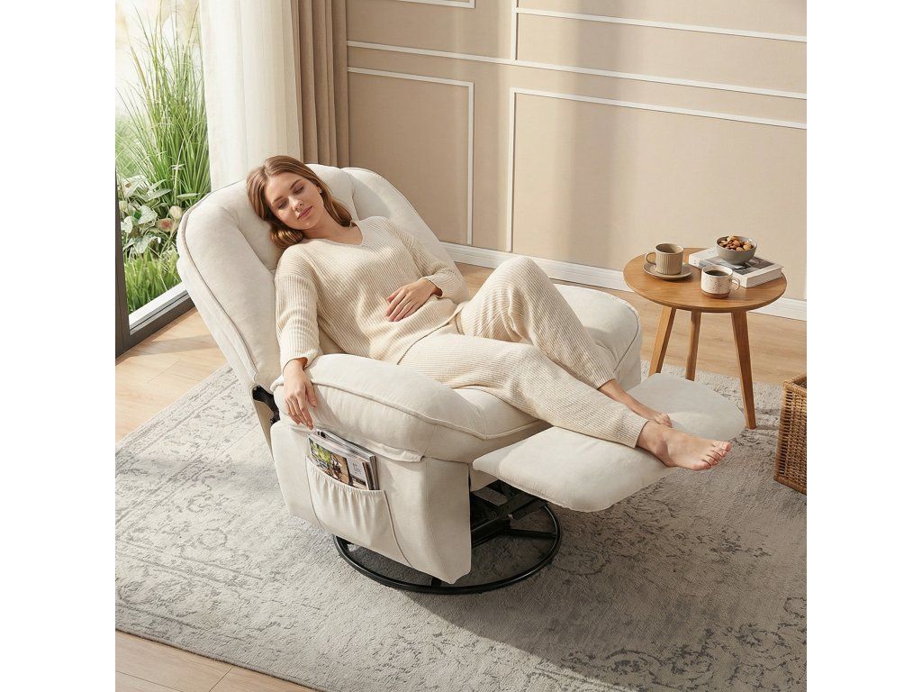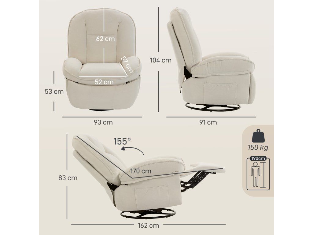 Relaxační křeslo HOMCOM, otočné houpací a polohovací křeslo s hlubokým sedákem, tlustým opěradlem, snadná montáž, krémová