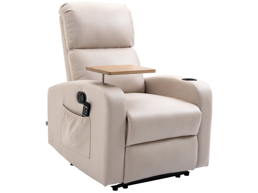 Relaxační křeslo s masážní funkcí, TV křeslo s polohovací funkcí, otočný stůl, masážní křeslo, polohovací křeslo s dálkovým ovládáním, mikrovlákno, béžová