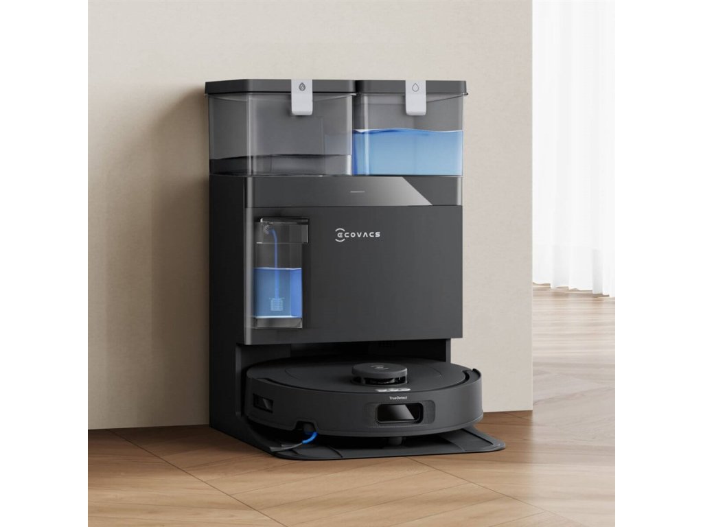 - All-in-one OMNI stanice myje rotující mopy horkou vodou o teplotě až 75 °C, vyždímá je a vysuší 45 °C teplým vzduchem. Zároveň automaticky vyprázdní prach ze zásobníku robotického vysavače a doplní mu vodu. Navíc do vody v přesném poměru nadávkuje čistící prostředek.