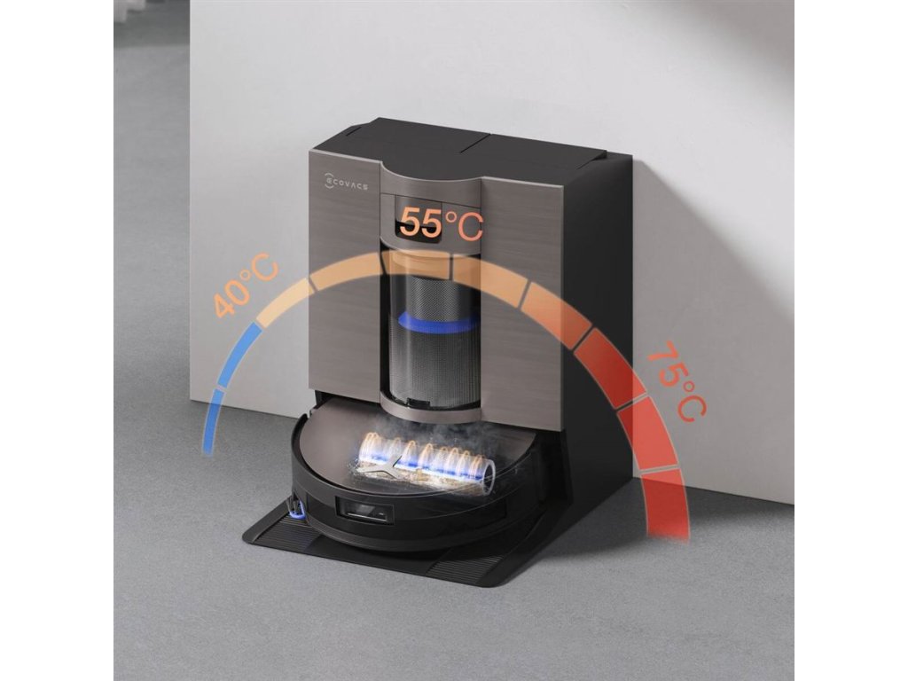 · Mycí válec se ve stanici OmniCyclone myje horkou vodou s řízenou teplotou 40 ~ 75 °C a vysuší 63 °C teplým vzduchem. Stanice zároveň automaticky vyprázdní prach ze zásobníku robotického vysavače, doplní mu čistou a odčerpá špinavou vodu. Navíc do vody v přesném poměru nadávkuje čistící prostředky s dvojitým účinkem.