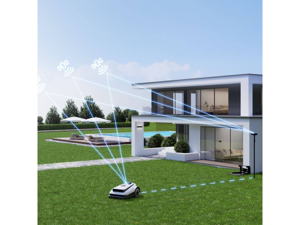- Díky automatickému mapování pomocí technologie SmartEdge není nutné fyzické vytyčení hranic pomocí obvodových kabelů ani manuální mapování