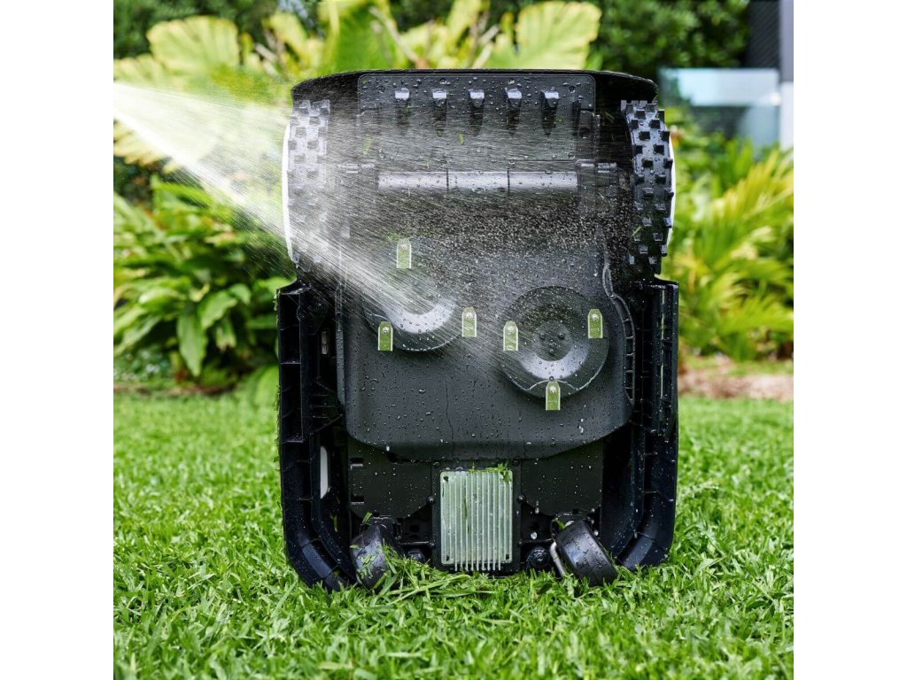Díky vodotěsnosti IPX6 nebude mít vaše robotická sekačka ECOVACS GOAT A1600 RTK žádný problém s pobytem venku. Sečení během deště však může váš trávník poškodit. Když dešťový senzor automaticky detekuje kapky deště, sečení se pozastaví a robotická sekačka se vrátí do stanice. Když déšť ustane, automaticky pokračuje v sečení tam, kde skončila. Hned po dešti nebo se zpožděním, aby trávník vyschl – podle toho, jak nastavíte v aplikaci ECOVACS HOME.