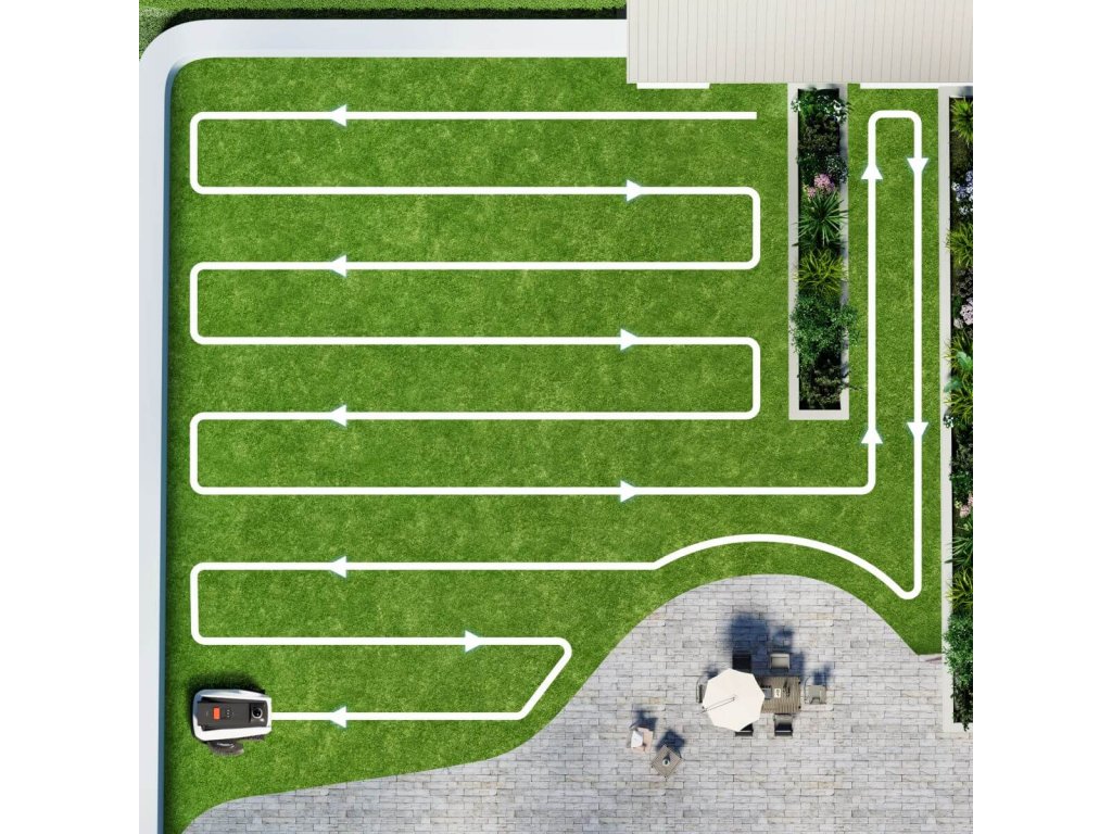 - Díky automatickému mapování SmartEdge není nutné fyzické vytyčení hranic pomocí obvodových kabelů ani manuální mapování.
