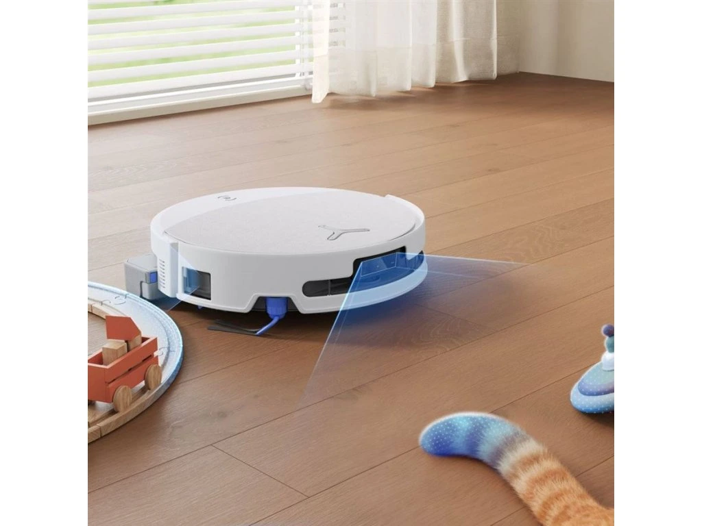 · Pomocí plně zabudovaného mini dToF LiDARu, kamery a technologie navigace AINA 2.0 inteligentně plánuje trasu, dynamicky se vyhýbá překážkám a rychle reaguje na pohybující se překážky či změny prostředí. I v členitých domácnostech se spoustou překážek čistí logicky a v přímých liniích.