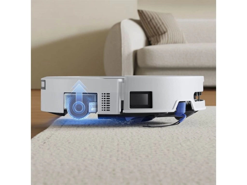 Robotický vysavač ECOVACS DEEBOT T90 OMNI pomocí ultrazvukového senzoru mimořádně přesně rozpoznává koberce. Když detekuje koberec nebo když prochází přes již vyčištěná místa, technologie Auto-Lift Mopping automaticky zvedne mycí válec o 15 mm. Tím ochrání koberce před namočením, znečištěním a zajistí jejich hygienickou čistotu. Technologie Suction Boost navíc na kobercích maximalizuje sací výkon a vysát je do hloubky.