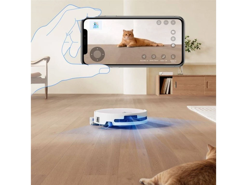 Ať jste kdekoli, funkce Video Manager robotického vysavače ECOVACS DEEBOT T90 OMNI umožňuje hlídkování a kontrolu domácnosti na dálku pomocí vestavěné 960p kamery. Živý video přenos navíc nabízí jednosměrnou hlasovou komunikaci s možností záznamu videa i zvuku. Díky plánovanému hlídkování začne robot v určeném čase hlídkovat a pořídí fotografie z každé místnosti v domácnosti, které si můžete prohlédnout v aplikaci. Buďte si přitom jisti, že vaše soukromí je naší nejvyšší prioritou s bezpečnostními opatřeními certifikovanými TÜV Rheinland.