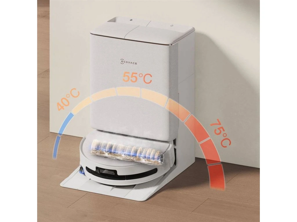 Po vyprání se za stálého otáčení mycí válec robotického vysavače ECOVACS DEEBOT T90 OMNI vysuší teplým vzduchem. Dvě hodiny sušení vzduchem o teplotě až 63 °C splňují standard pasterizace. Mycí válec je po každém úklidu zcela suchý, bez bakterií a nezapáchá.