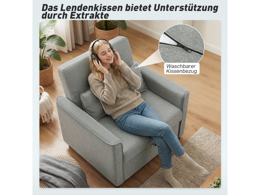 ✔ Kompaktní design křesla na spaní, ideální do malých bytů, studentských pokojů nebo pokojů pro hosty