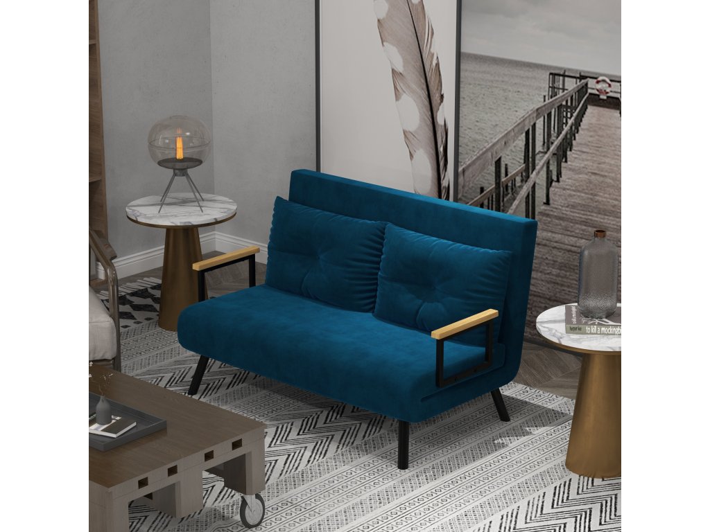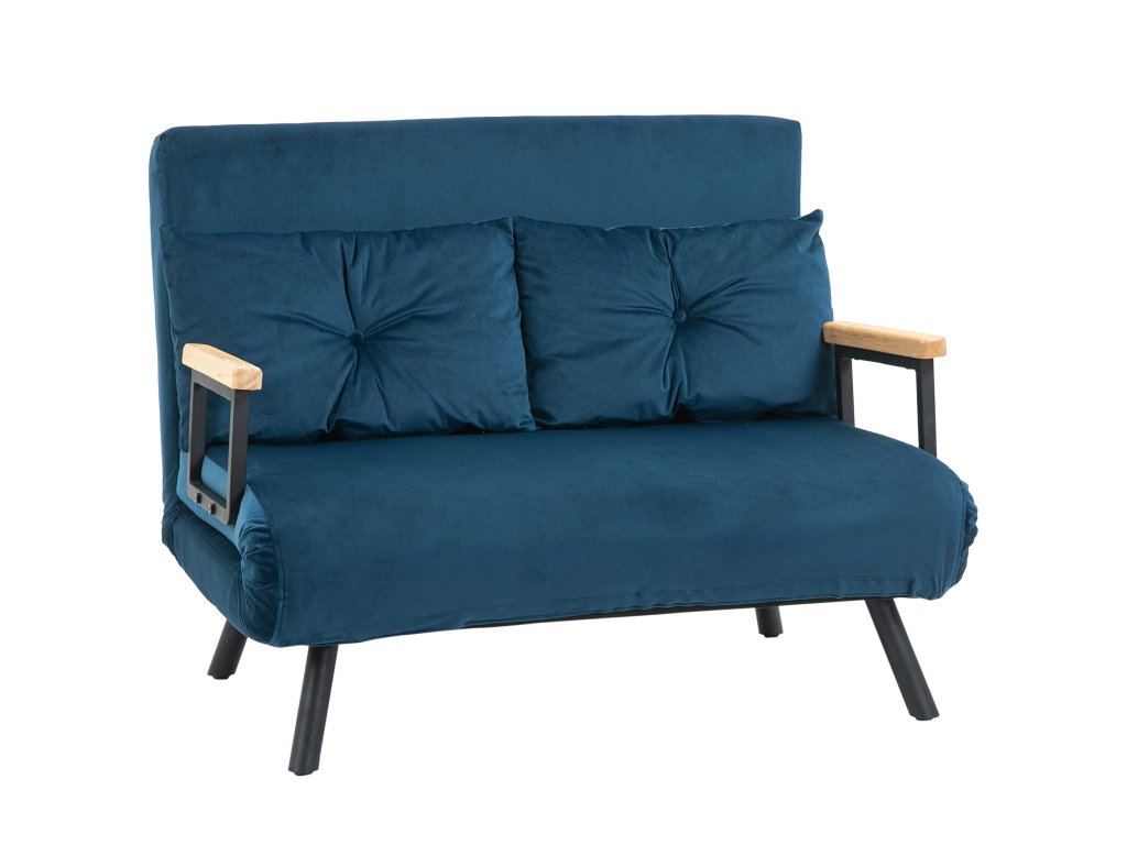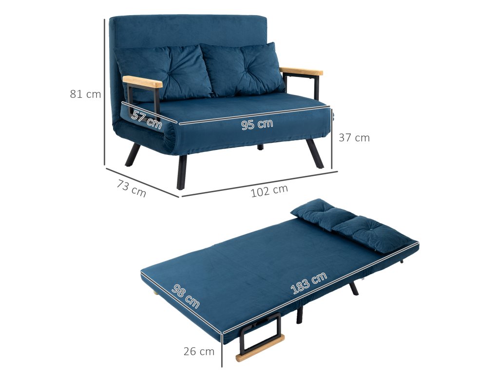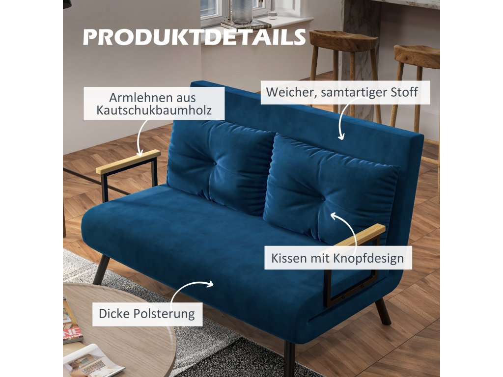 Rozkládací pohovka HOMCOM 2místná sametová pohovka, funkce spaní, včetně 2 polštářů, sametový vzhled, přírodní + modrá barva