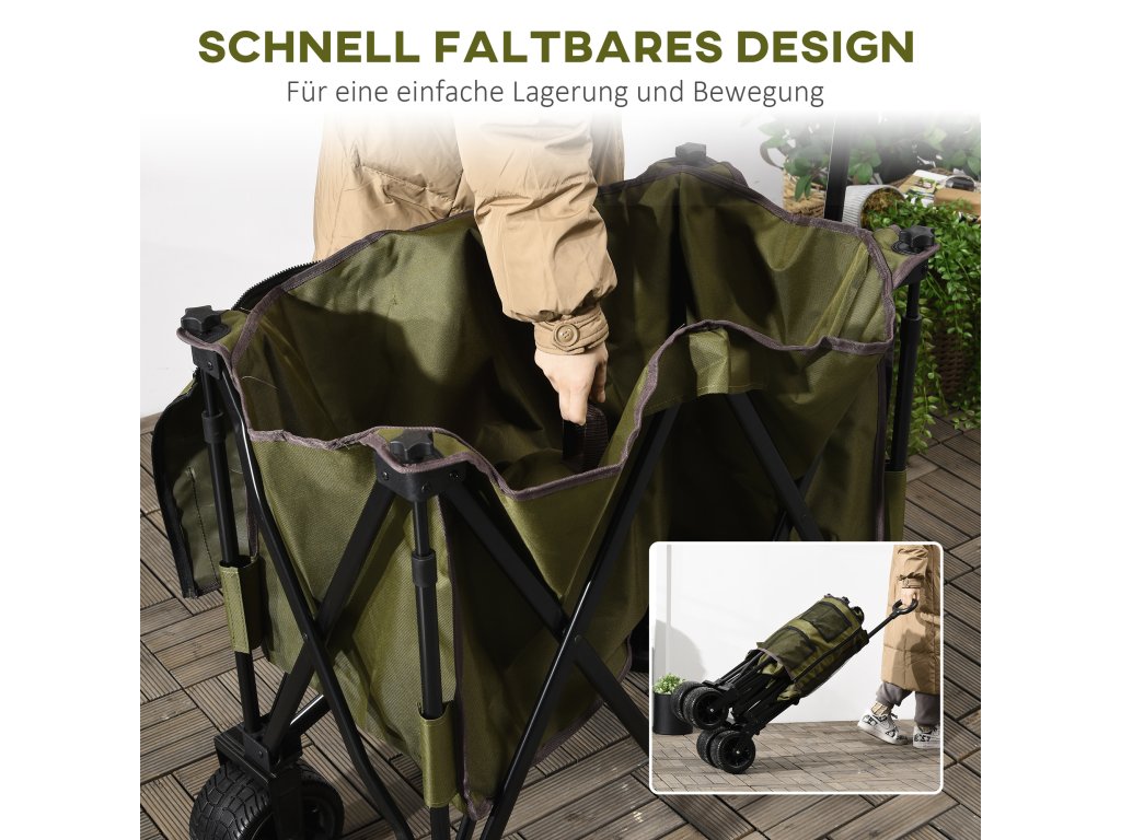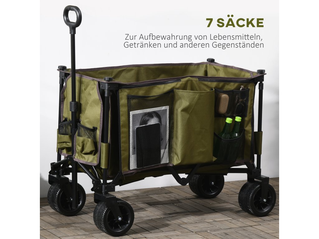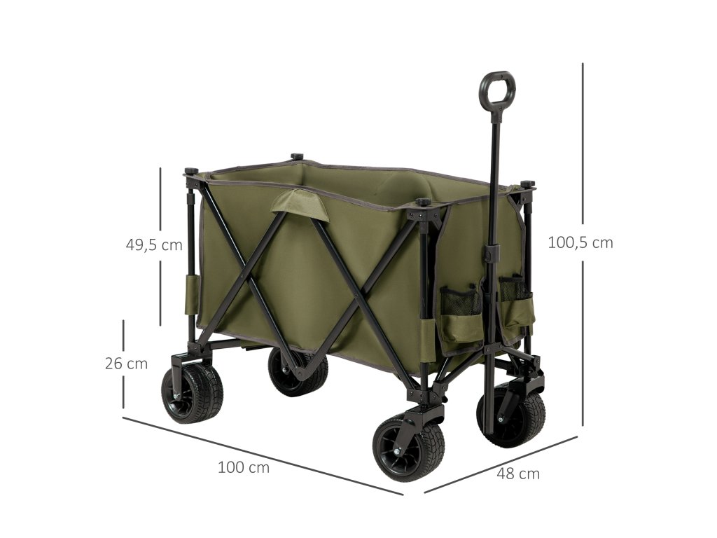 Ruční vozík Outsunny, skládací, 7 bočních kapes, nastavitelná rukojeť, do 120 kg, ocel, zelený, 100 x 48 x 100,5 cm
