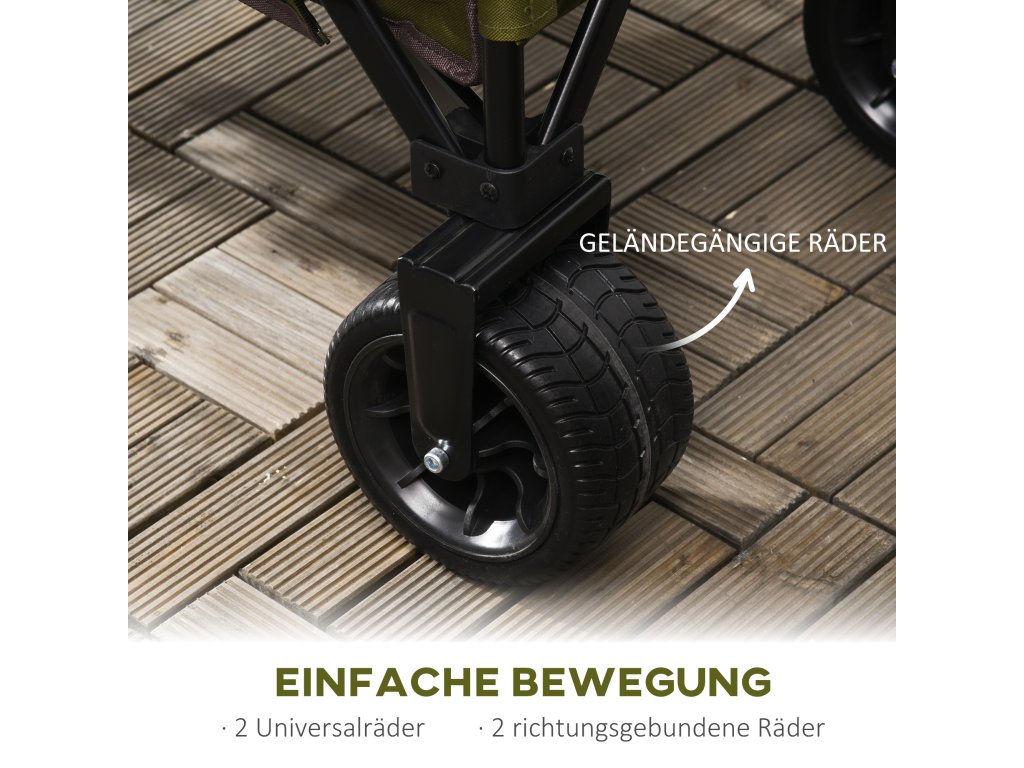 - Praktická skládací konstrukce: Tento vozík lze rychle složit pomocí rukojeti a vejde se do každého standardního kufru auta. Ve složeném stavu se také snadno a pohodlně přenáší. Rukojeť ve tvaru vlny zajišťuje dobré uchopení.