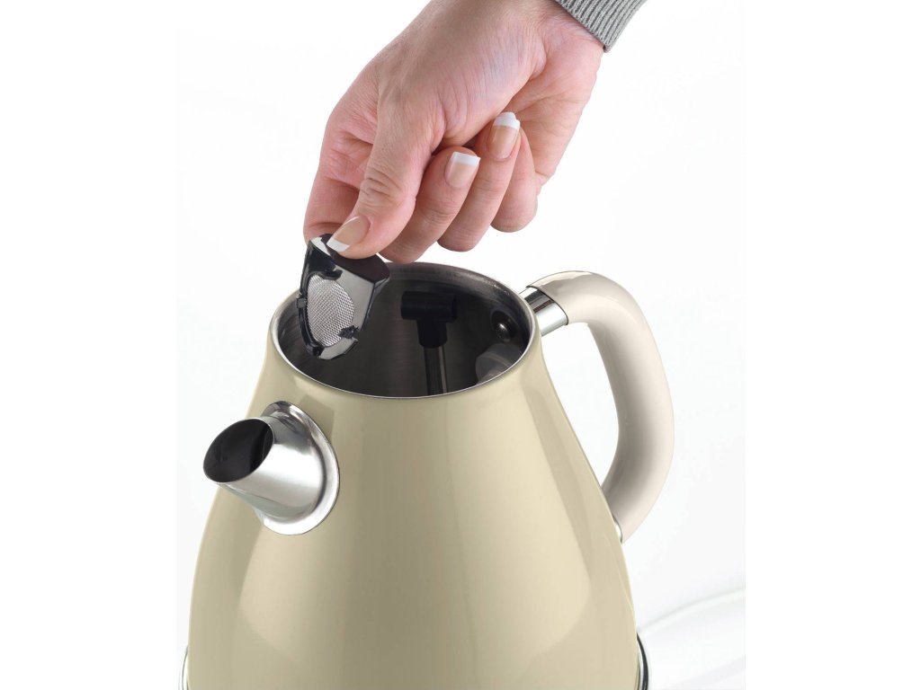 Nerezová rychlovarná konvice • vintage retro design • příkon: 2000 W • 360° otočná základna • objem: 1,7 l • indikátor úrovně vody • vnitřní odnímatelný odvápňovací filtr