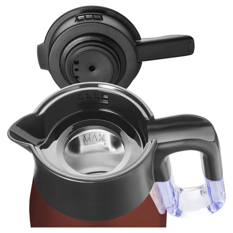 Konvice pracuje tiše a maximálně bezpečně – stěny jsou chladné i při varu a díky zámku víka nevyteče při převrhnutí ani kapka.