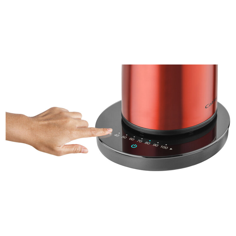 Požadovanou teplotu vody navolíte na přehledném dotykovém panelu. Konvice pracuje tiše a maximálně bezpečně - stěny jsou chladné i při varu a díky zámku víka její obsah při převrhnutí nevyteče.