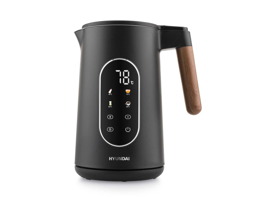 Objem rychlovarné konvice (l): 1.7 Příkon rychlovarné konvice (W): 2200 Ukazatel množství vody: NE Podstavec: středový konektor – 360° Typ ohřevu: ukrytá topná spirála - ploché dno Regulace teploty: ANO Teploměr: ANO Cestovní: NE Materiál: nerez Barva: černá Retro: NE Digitální ukazatel teploty: ANO Dvouplášťové provedení: ANO S infuzérem: NE Smart funkce: NE Provedení výrobku: černá barvaRychlovarná konvice Hyundai VK690 spojuje moderní design, bezpečnost a maximální komfort. Prémiové dvouplášťové provedení s vnitřním tělem z nerezové oceli minimalizuje riziko popálení a je tak ideální volbou pro domácnosti s dětmi.
