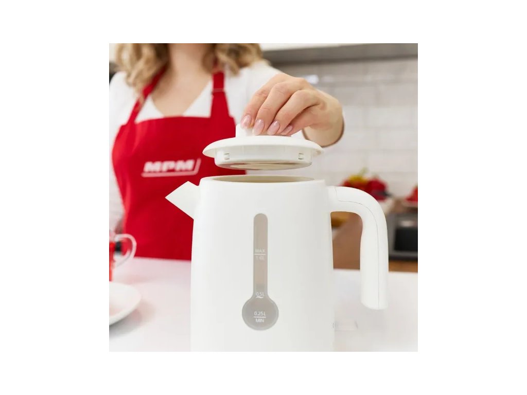 Oceňuješ pohodlí a úsporu místa v kuchyni? Konvice MCZ-127/C s objemem 1 litr je ideálním řešením pro jednotlivce, páry, seniory nebo malé rodiny. Během okamžiku v ní ohřeješ vodu jak na jednu šálek kávy, tak na čtyři hrnky čaje, podle toho, co právě potřebuješ. Díky svému kompaktnímu designu je nejen praktická, ale také snadno skladovatelná na kuchyňské lince.