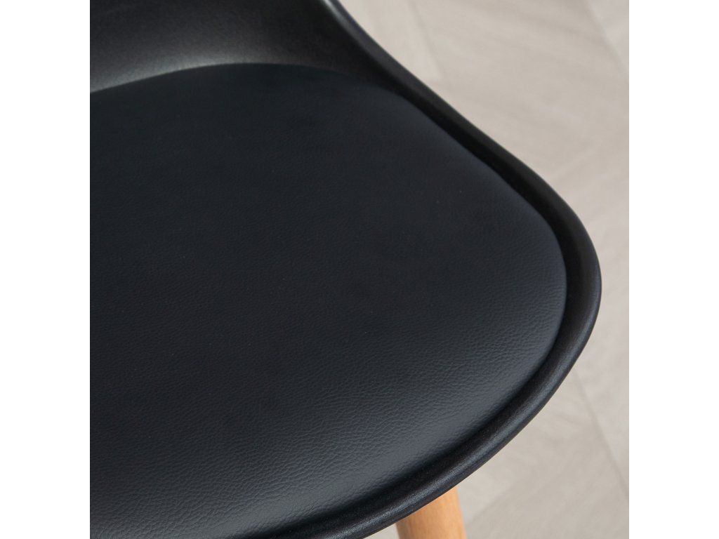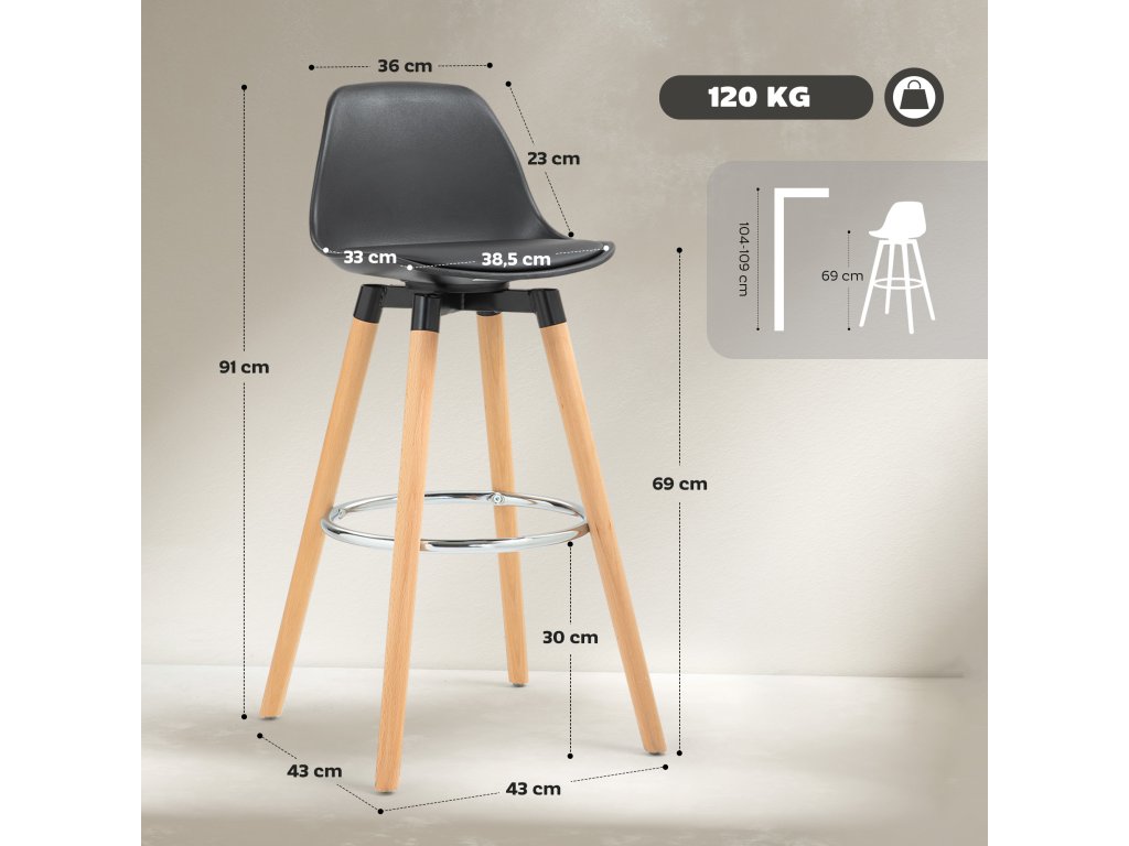 ✔ Vysoká kuchyňská židle s rámem z masivního dřeva, ocelovou podnožkou a černým polypropylenovým sedákem: krásná kombinace materiálů a barev