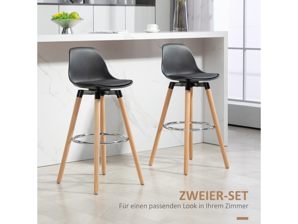 Sada 2 barových židlí HOMCOM, skandinávský design, podnožka, 43 cm x 43 cm x 91 cm, přírodní + černá