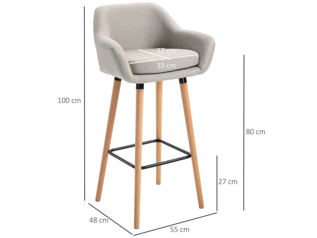Sada 2 barových židlí HOMCOM, včetně podnožky, masivní dřevo, 55 cm x 48 cm x 100 cm, béžová