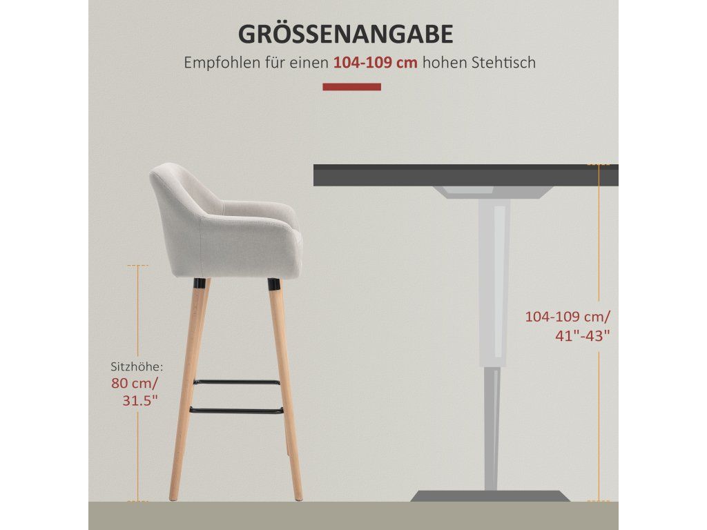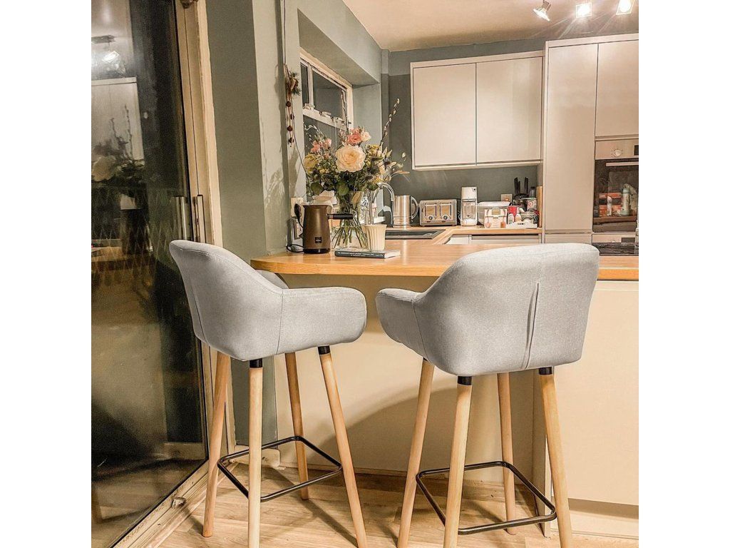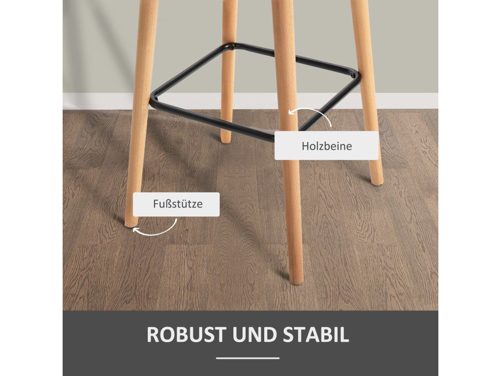 Dřevěné nohy: Dřevěné nohy barových židlí jsou robustní a poskytují dostatek stability. Výška sedáku 80 cm činí tyto stoličky ideálními pro kuchyňské linky a barové židle.
