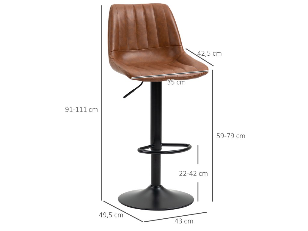 Sada 2 barových židlí HOMCOM v retro designu, s podnožkou, výškově nastavitelné, 43 cm x49,5 cm x 111 cm