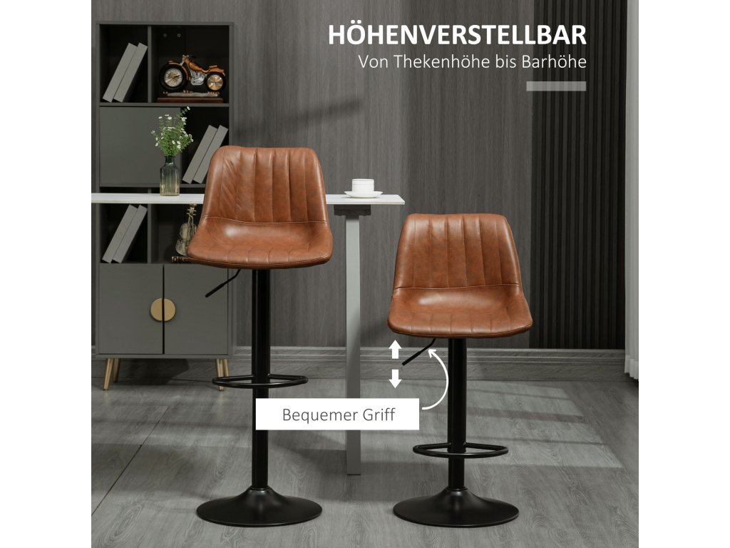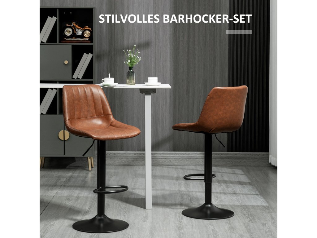 - Retro design: Sada 2 barových stoliček ve vintage stylu, velmi elegantní, která dodá vašemu interiéru další nádech stylu a šarmu - hnědý svršek z umělé kůže podtrhuje retro vzhled barových stoliček.