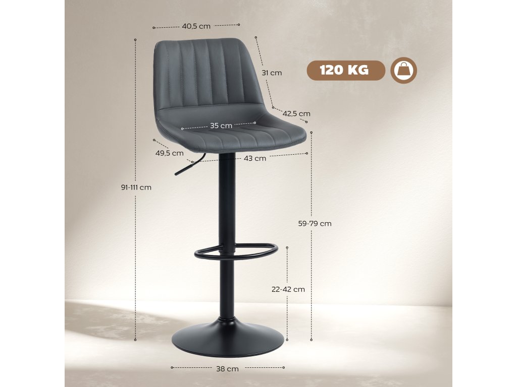 ✔ Barová židle s nastavitelnou výškou sedáku od 59 do 79 cm.