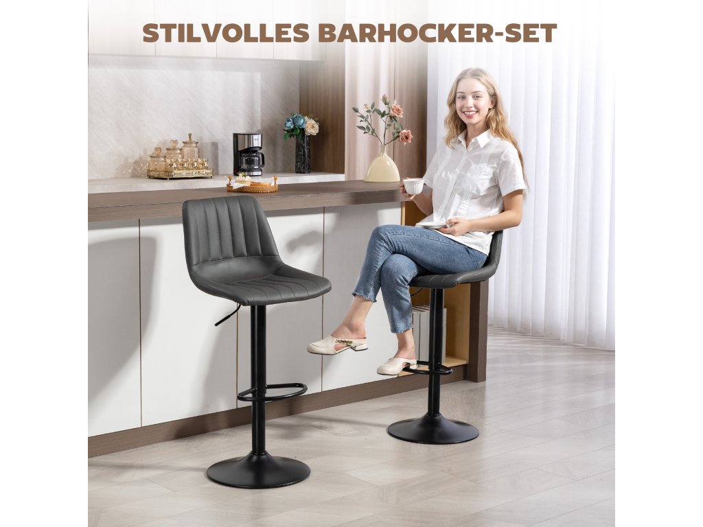 Tato sada dvou barových židlí je ideálním řešením pro sezení na kuchyňském ostrůvku, u vysokého stolu v obývacím pokoji nebo jako sedadlo u barového pultu. Tyto židle kombinují pohodlí a styl a dodávají vašemu interiéru nádech vintage elegance. Díky polstrovanému sedáku, opěradlu a opěrce nohou jsou mimořádně pohodlné. Díky nastavitelné výšce jsou židle vždy v perfektní výšce. Užijte si společenské posezení v pohodlném sezení!