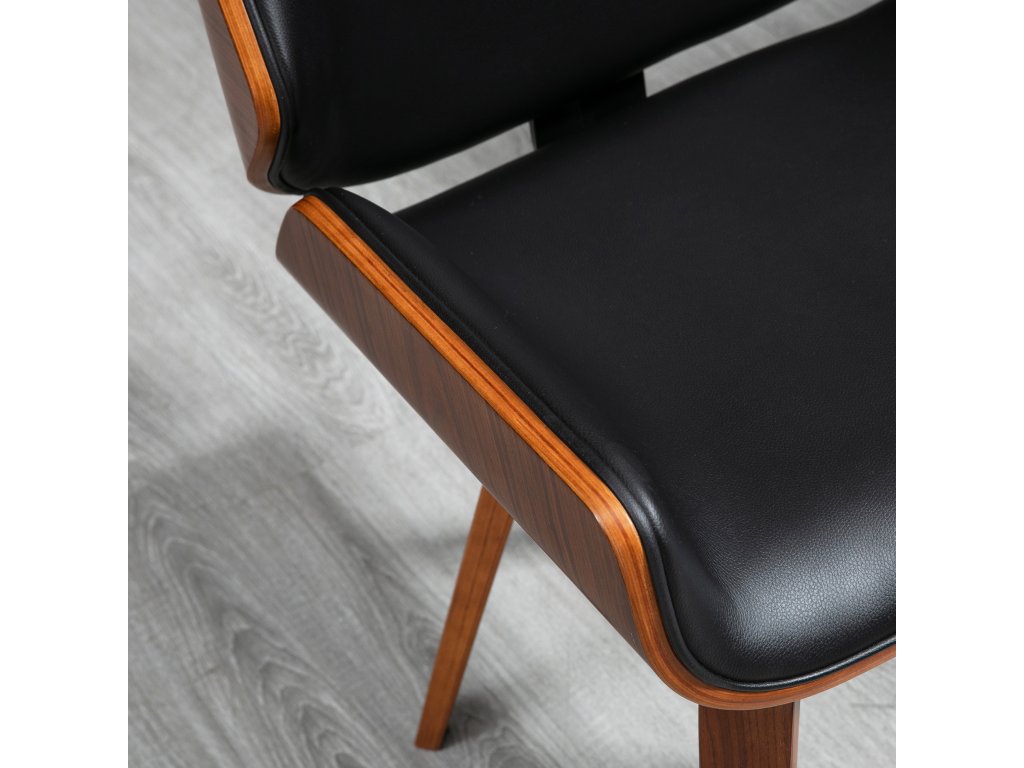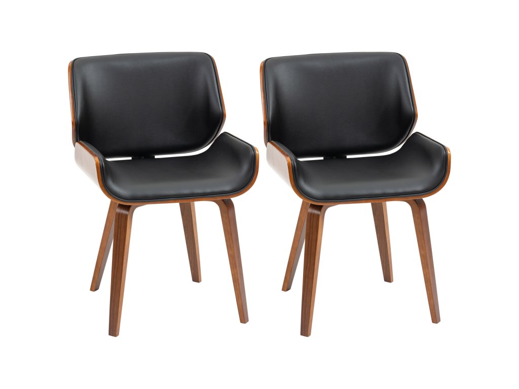 Vintage styl: Tato sada dvou židlí v retro designu se zaoblenými liniemi a atraktivním barevným kontrastem dřeva a černé dodá vaší jídelně elegantní nádech. Skutečný poutač v každé místnosti. Židle zaujme okouzlující kombinací syntetického čalounění a oceli.