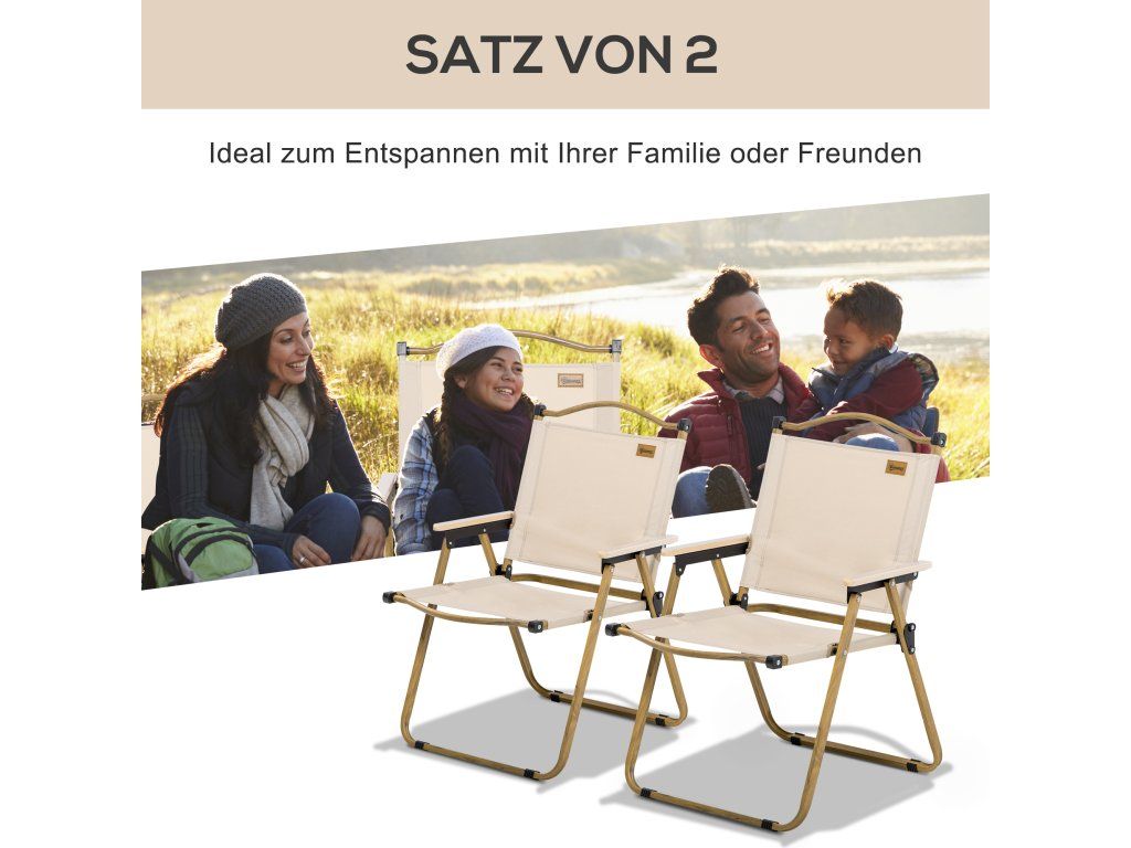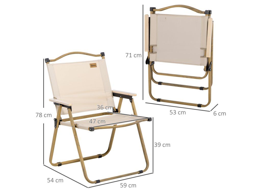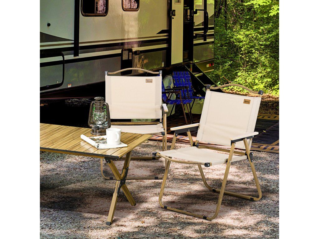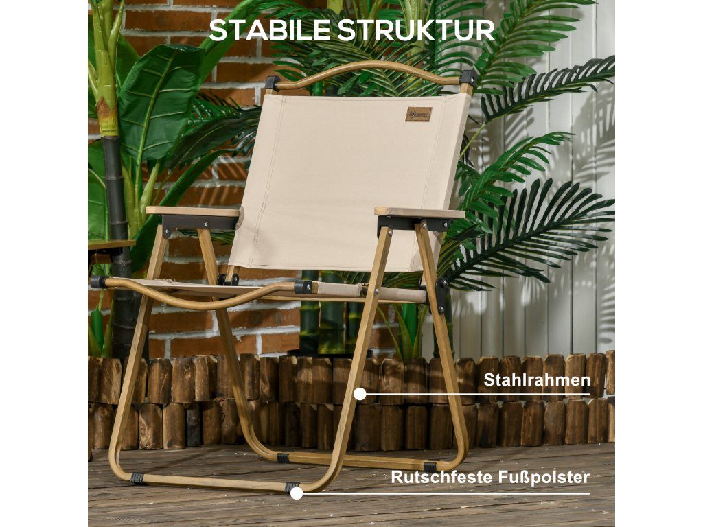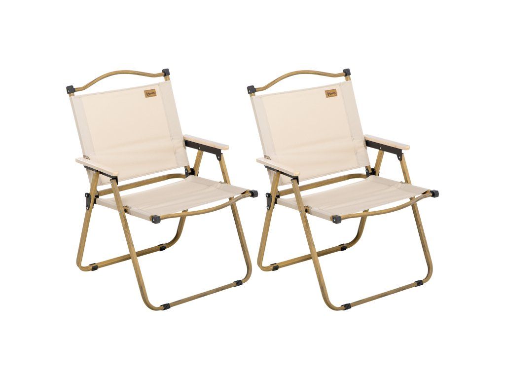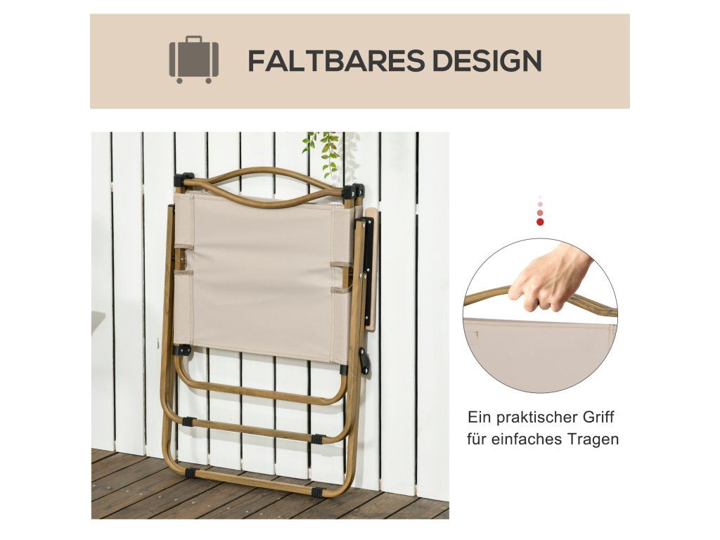 Sada 2x skládacích kempingových židlí Outsunny s ocelovým rámem, dřevěný vzhled, khaki