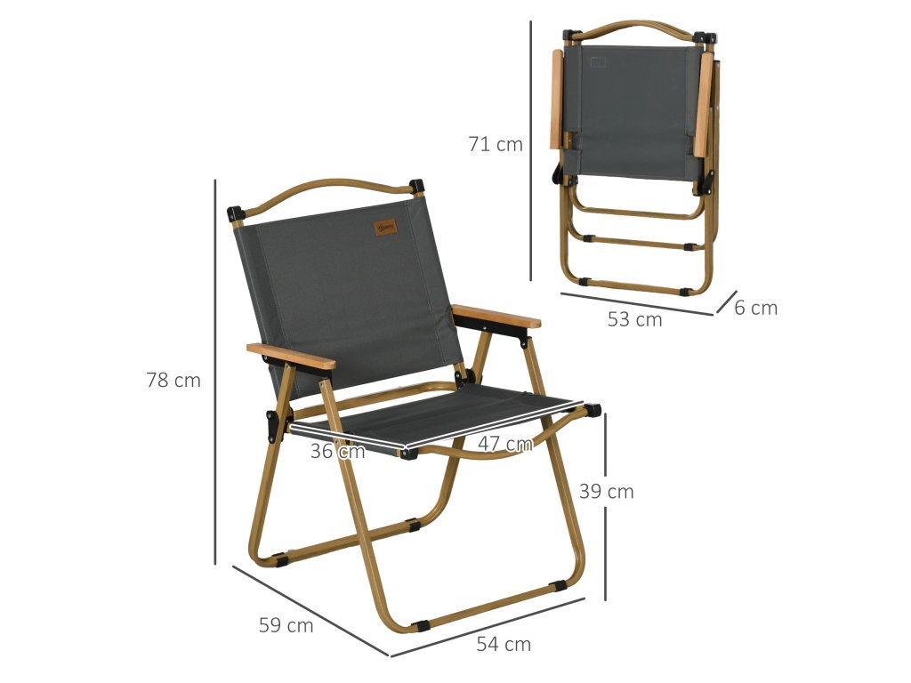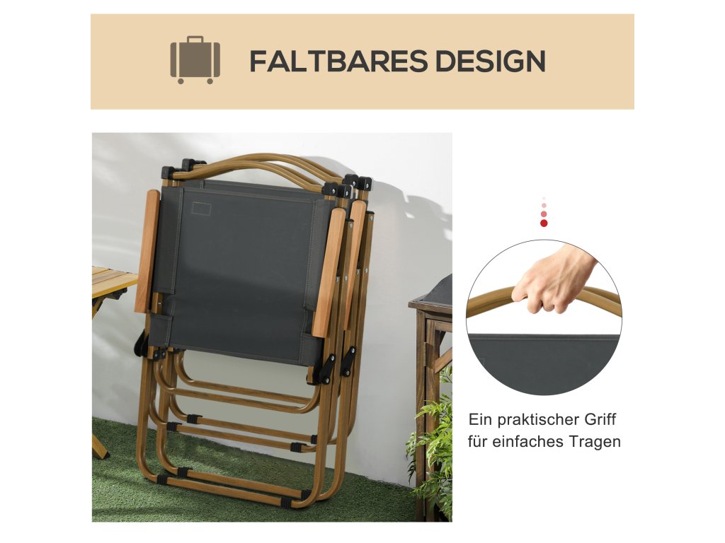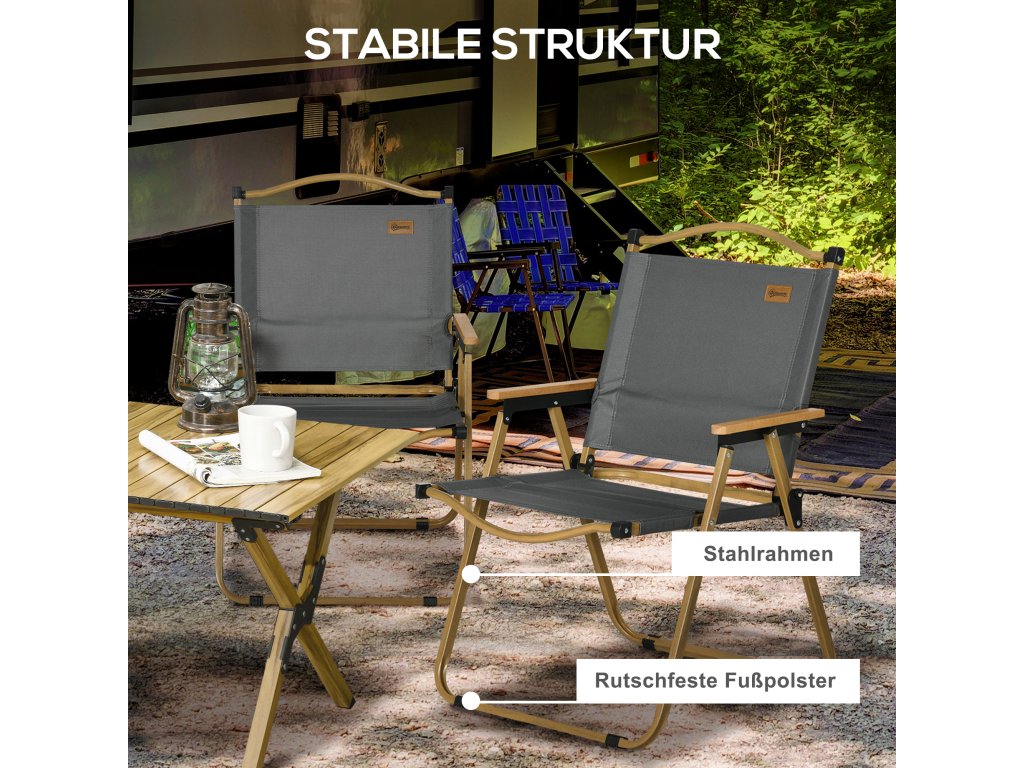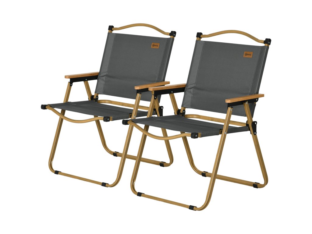 Sada 2x skládacích kempingových židlí Outsunny s ocelovým rámem, dřevěný vzhled, tmavě šedá