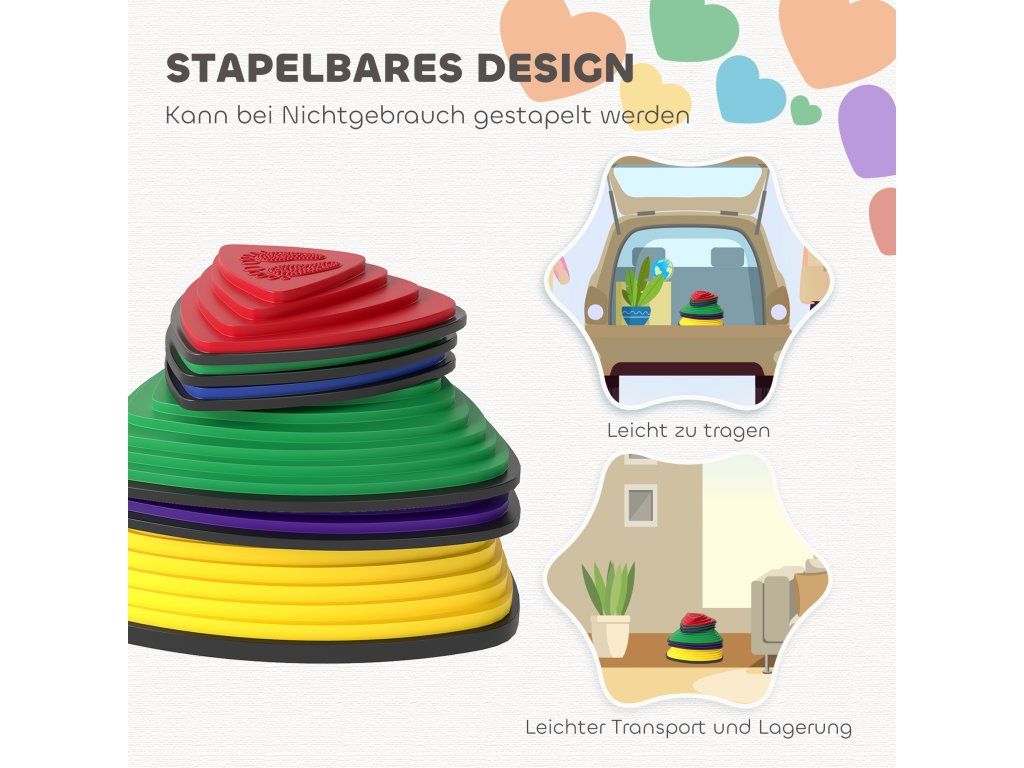 Úspora místa a přenosnost: Tyto senzorické nášlapné kameny jsou lehké a stohovatelné, snadno se přepravují, skladují a organizují. Jsou ideální pro použití doma i na cestách, protože zabírají minimum místa a rychle se skládají.