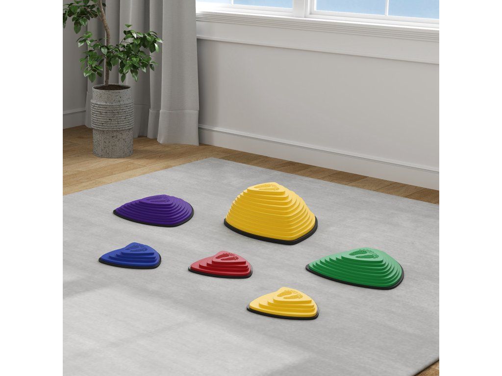 Sada 6 nášlapných kamenů AIYAPLAY, protiskluzový design, pro vnitřní i venkovní použití, stohovatelné, barevné