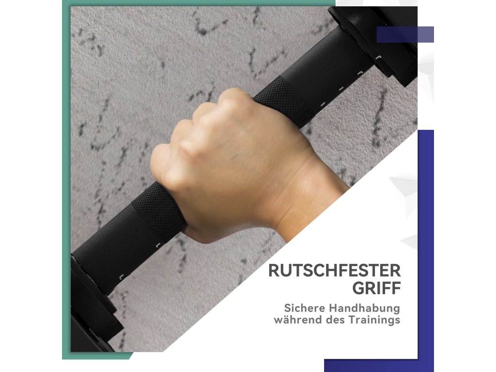 ✔ Protiskluzové rukojeti sady činek zaručují bezpečnou manipulaci během tréninku