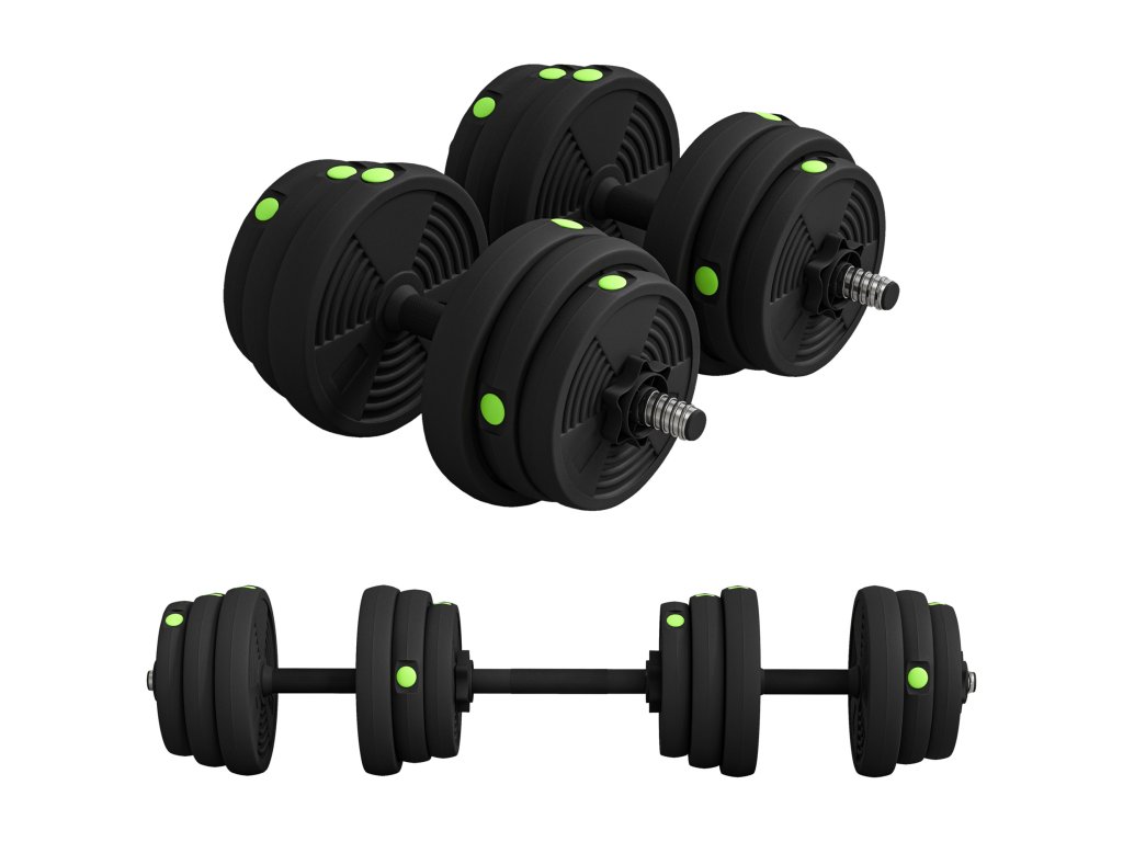 Sada činek 2 v 1, činka a činková tyč, 25 kg, protiskluzová, vhodná na podlahu, černá/zelená