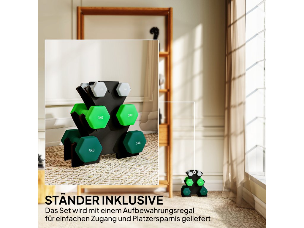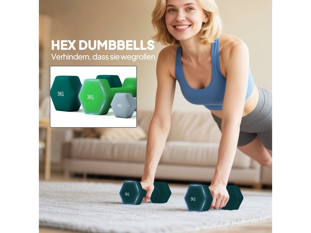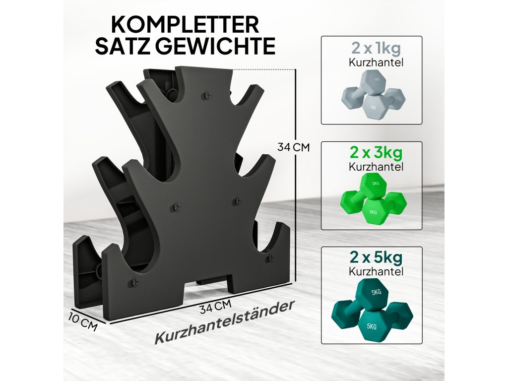✔ Kompletní sada činek: 2 x 1 kg, 2 x 3 kg, 2 x 5 kg