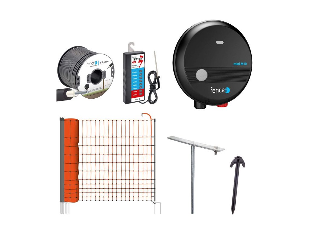 Základ sady tvoří síťový generátor fencee mini M10 s výkonem 1 J, který je univerzálně použitelný pro ohrady s délkou do 9 km. Moderní voděodolná konstrukce generátoru. Vypínač a LED kontrolky na přední straně signalizují provoz zařízení a případnou poruchu na ohradníku. Velmi spolehlivý a univerzální zdroj pro elektrický ohradník.