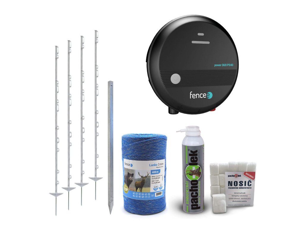 Sada pachový + elektrický ohradník preventivní ochrana srnčat a lesní zvěře - DUO zdroj - lanko 400 m