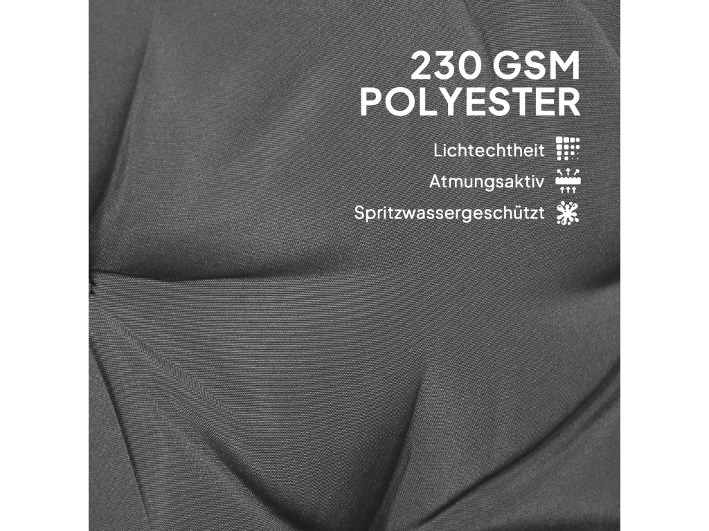 - polyesterová tkanina 230 g/m²: Tato sada polštářů na křeslo je vyrobena ze silného polyesteru a nabízí zvýšenou odolnost a trvanlivost. Je také odolná proti stříkající vodě, takže je lze snadno otřít