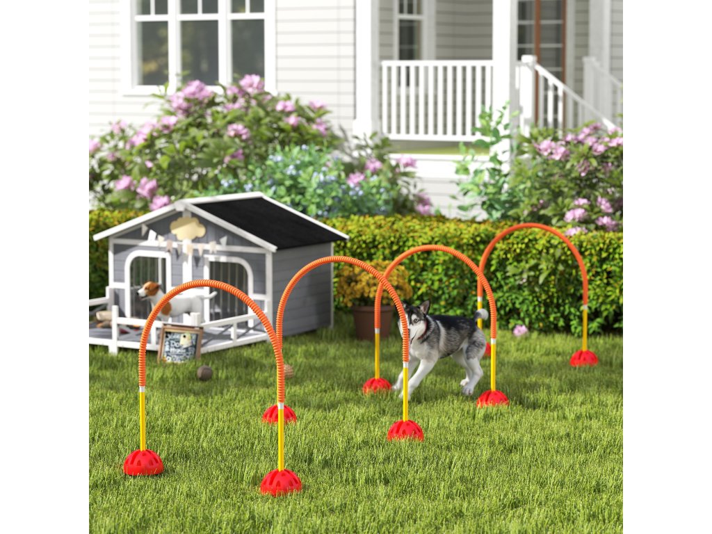 PawHut je 5dílná sada nastavitelných agility branek v oranžové a žluté barvě, speciálně navržená pro citlivé psy.