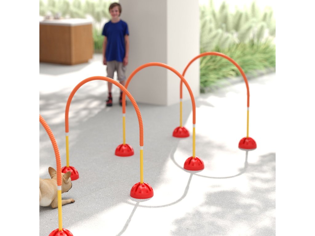 ATRAKTIVNÍ BARVY PRO LEPŠÍ SOUSTRUŽENÍ: Díky zářivým oranžovým a žlutým barvám tato překážková dráha upoutá pozornost vašeho psa a udrží si jeho zájem, čímž podpoří maximální soustředění během tréninku. Jasné barvy zvyšují efektivitu každého tréninku.