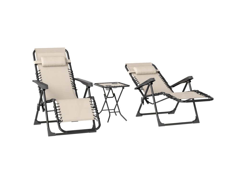 Sada zahradních lehátek Outsunny 3-TLG. Lehátko s čajovým stolkem 2 lehátka Polštáře, venkovní lehátko 90x56x110 cm Béžová barva