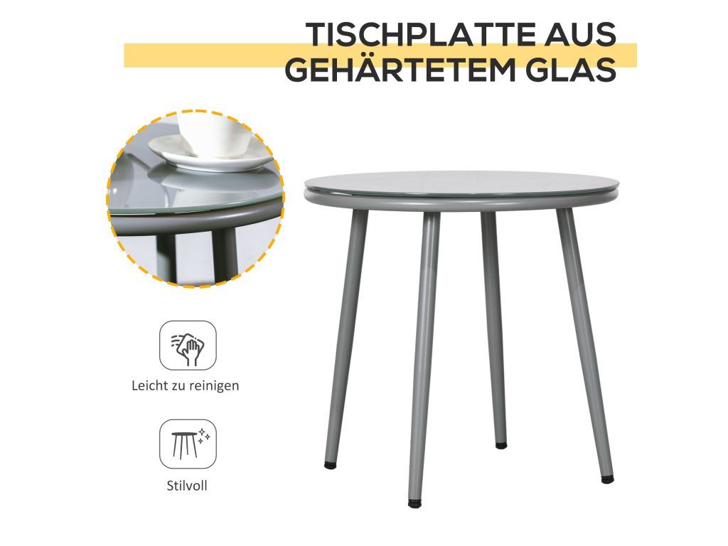 Proměňte svou zahradu v útulnou oázu díky sadě ratanového nábytku Outsunny. Sada se skládá ze dvou dekorativních terasových křesel, která jsou vybavena bohatě polstrovanými sedáky pro maximální pohodlí, a elegantního kulatého stolku s krásnou skleněnou deskou. Práškově lakovaný ocelový rám a protiskluzové nožky poskytují optimální oporu za všech okolností, takže si můžete naplno užívat čerstvého vzduchu a jemných letních paprsků.