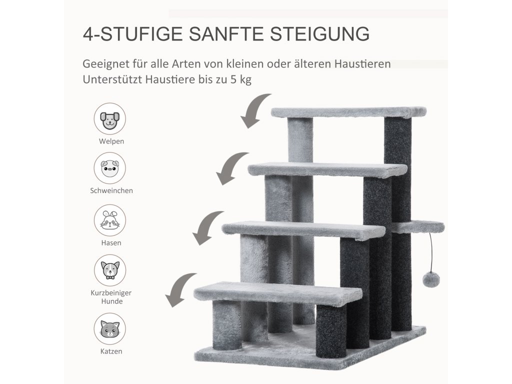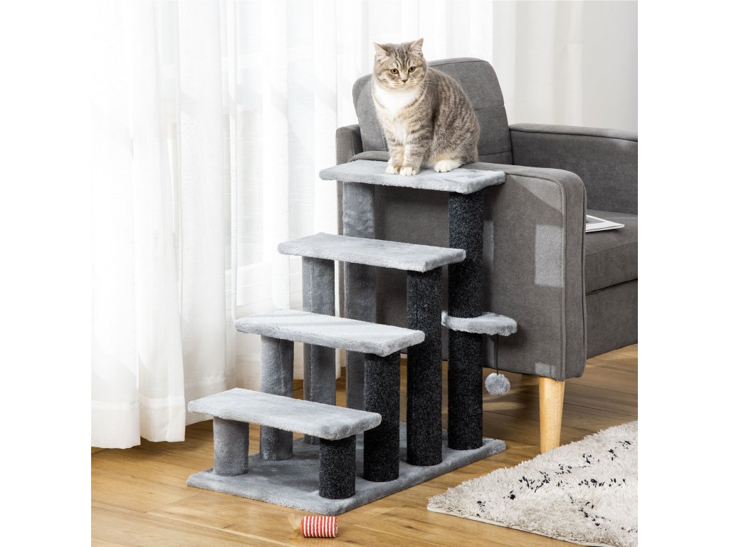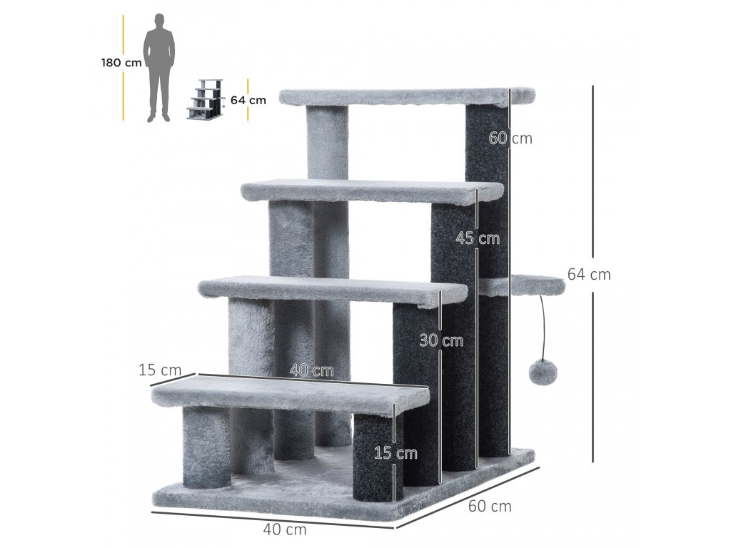 Schody s míčem na škrábání pro kočky Grey - 60x40x64 cm