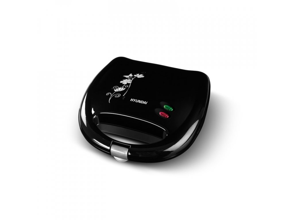 Dvouplátkový sendvičovač Hyundai SM 626 v netradičním černé provedení s trojúhelníkovými plotýnkami, nepřilnavým povrchem a snadným ovládáním.