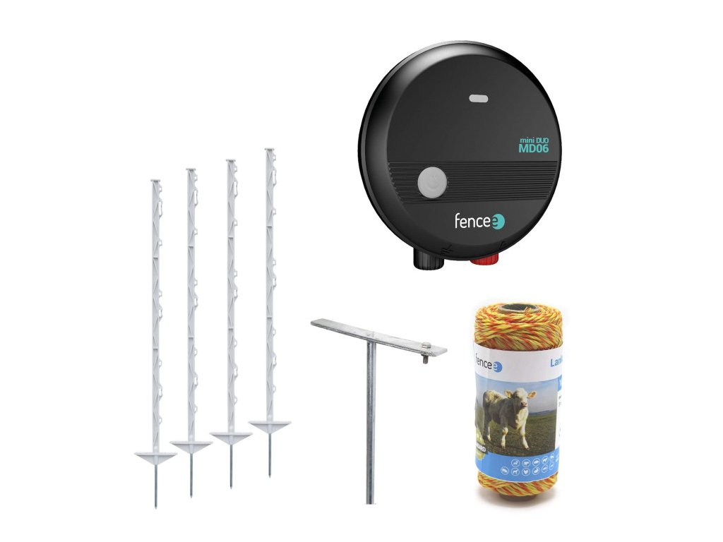 V kompletním balení najdete kvalitní 100m žluto-oranžové lanko s třemi nerezovými vodiči, které zaručí delší životnost vodivého lanka. Pak také 10 plastových sloupků 105 cm dlouhých. Kompletní set elektrického ohradníku je praktickým a mobilním řešením s jednoduchou instalací.