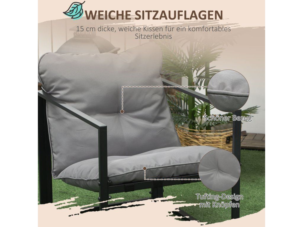 Polstrované polštáře: 15 cm silné polstrované polštáře jsou umístěny na sedadlech a opěradlech zahradního nábytku pro pohodlné sezení. Robustní kovový rám nejen dobře vypadá, ale také zajišťuje dobrou cirkulaci vzduchu.
